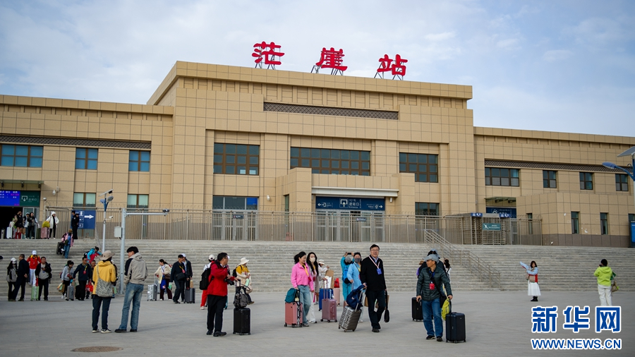 5月19日,乘坐“西寧-茫崖”旅游專列的游客到達青海省海西蒙古族藏族自治州茫崖站。
