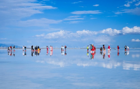 茶卡鹽湖景區作為青藏高原生態文化旅游的瑰寶,以其獨特的鹽湖景觀和豐富的自然資源,生動詮釋了“綠水青山就是金山銀山”的理念。四周被巍峨的雪山環繞,湖面平靜如鏡,與天空相映成趣,形成了世界著名的“天空之鏡”奇觀,被《國家旅游地理》評為“人一生要去的55個地方”之一,成為無數游客心馳神往的旅游勝地。自2016年運營,茶卡鹽湖景區累計接待國內外游客超2000萬人,帶動周邊近千家涉旅企業發展,直接帶動就業超1000人、間接帶動3000多人,旅游帶動服務業年收入達5億元,為茶卡地區的經濟社會發展注入了強大動力。