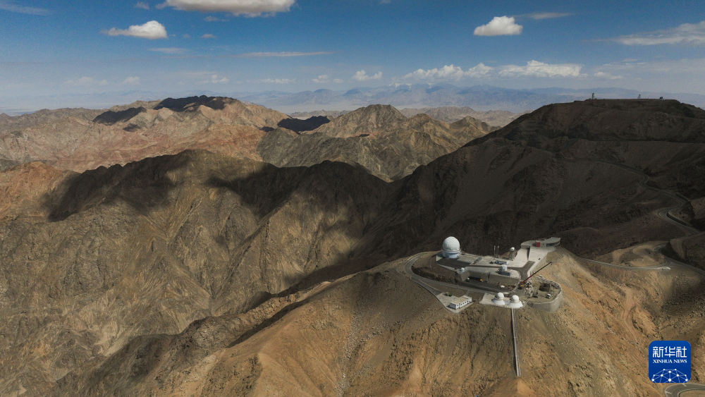 這是7月29日在冷湖鎮賽什騰山拍攝的中國科學技術大學和中國科學院紫金山天文臺聯合研制的大視場光學成像望遠鏡——墨子巡天望遠鏡(無人機照片)。 新華社記者 張龍 攝