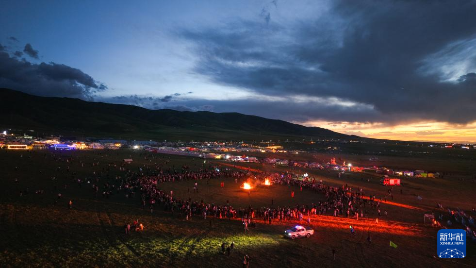 觀眾在活動主會場參與鍋莊晚會(8月15日攝,無人機照片)。